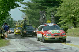 Stage 5 of the Tour de Georgia was the most demanding stage and perhaps the most exciting stage of the race. This stage started in Athens, home of the Athens Twilight Criterium, and ended on the famous climb up Brasstown Bald. What a long day, not only for racers but spectators as well. After the stage was over we had to hammer from the mountains back to Athens to watch the Twilight. Maybe having these two major cycling events happening on the same day is a little too much. Hopefully the scheduling will be better in 2005.
