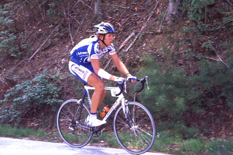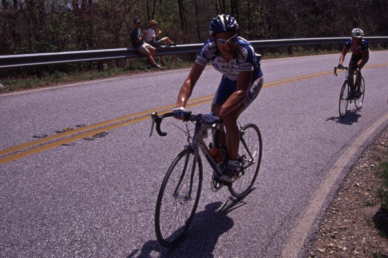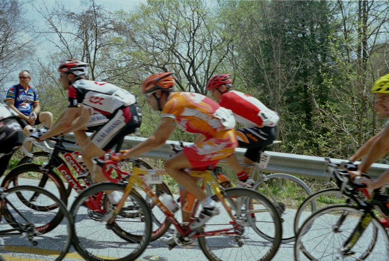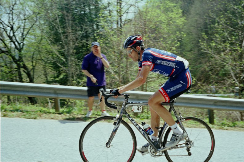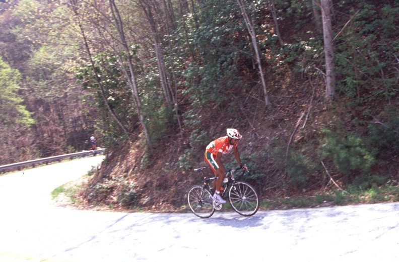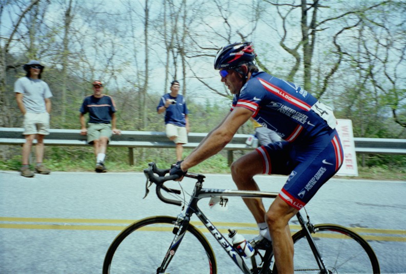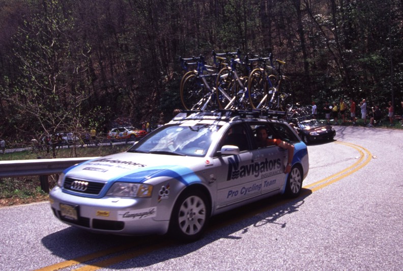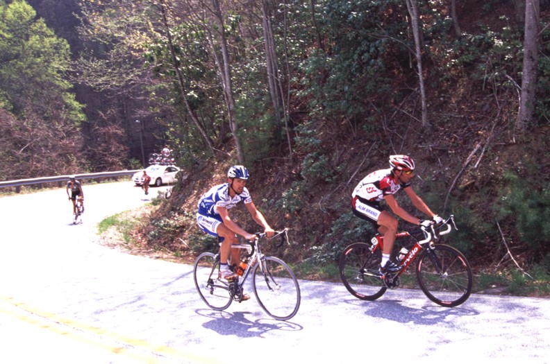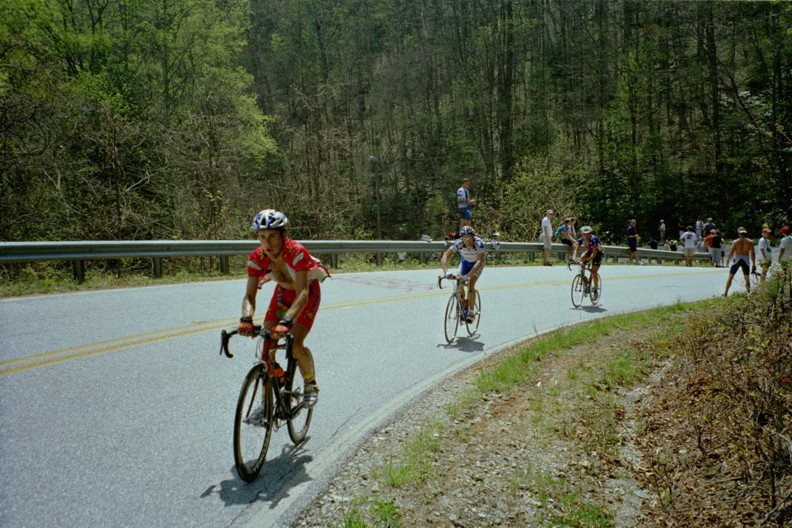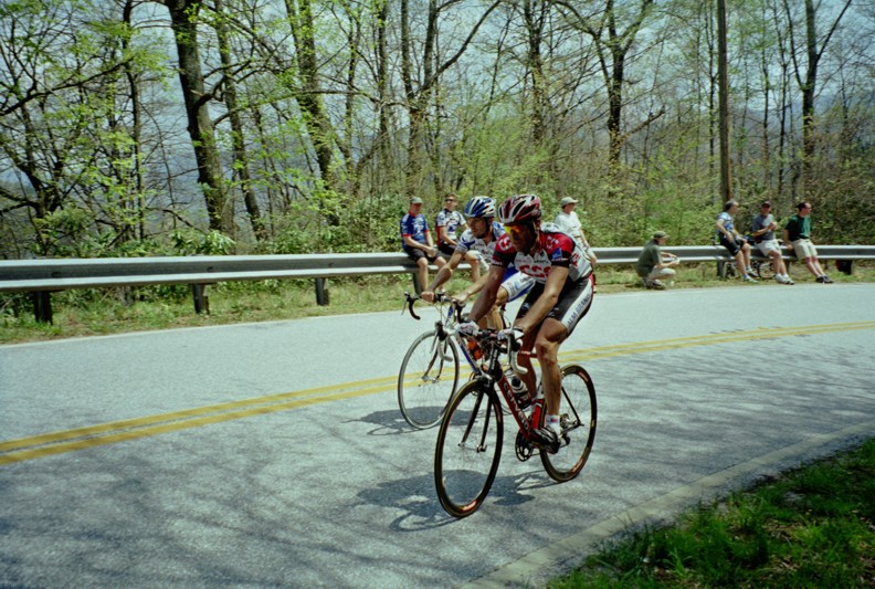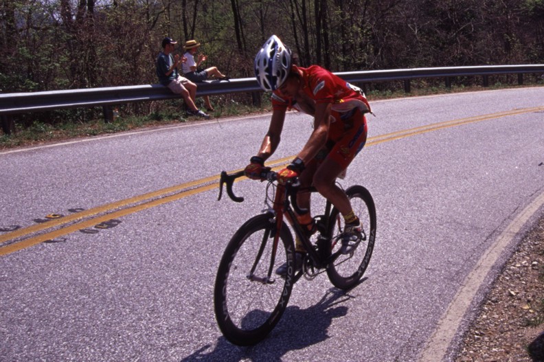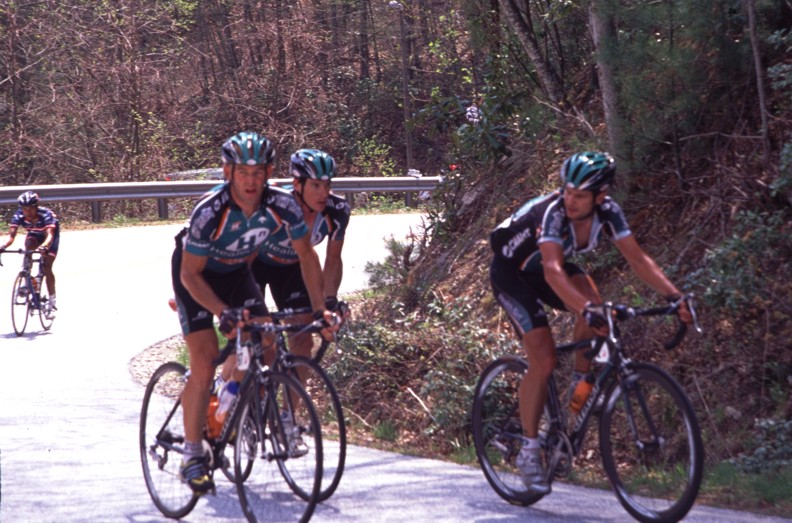 George Hincappie previewed this climb for the Postal team, its only two hours drive from his front door, and told the team that they would need 23 tooth rear cassettes for the climb. Most of the other teams had not previewed the climb and underestimated their needs. The majority had 21's on the back and when they realized that Postal was equipped with 23's there was a mad scramble to get 23's early that morning. A contact of ours that was working neutral support said they had to refuse to give away any of their 23's in order to keep enough to do their job. On this final climb it was rumored that several riders were flatting on purpose in hopes to get one of the rear wheels with a 23. Because of improper gear selection many of the riders suffered more than they should have.