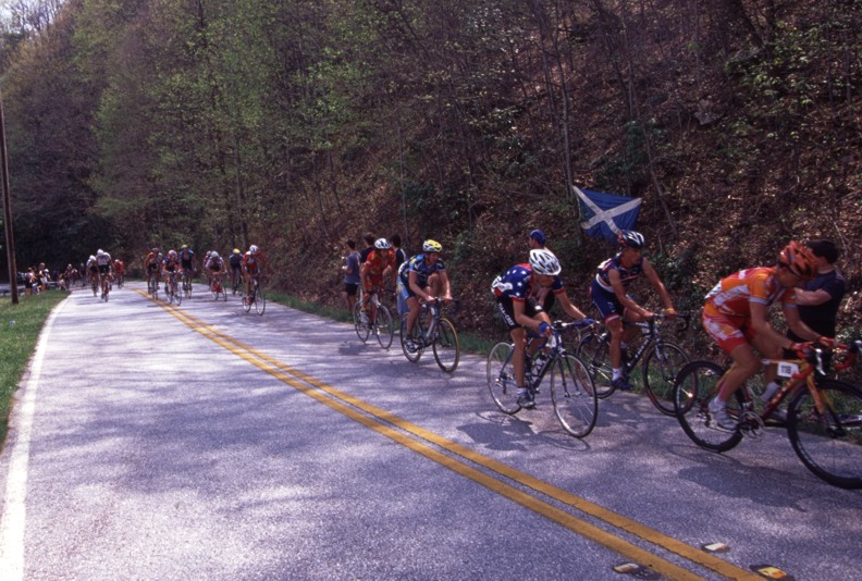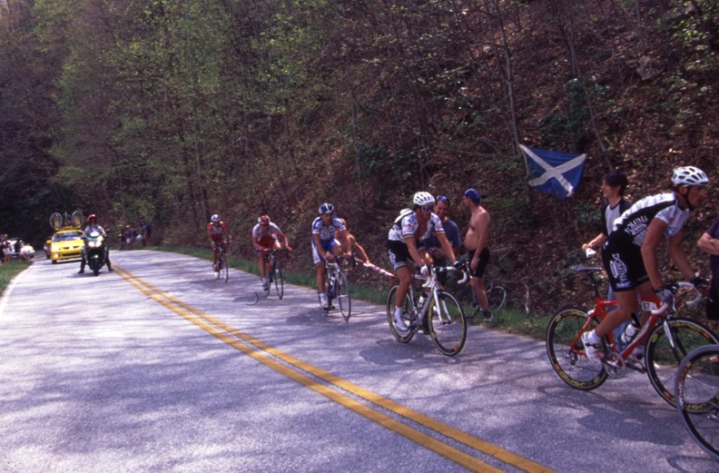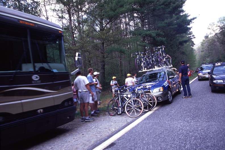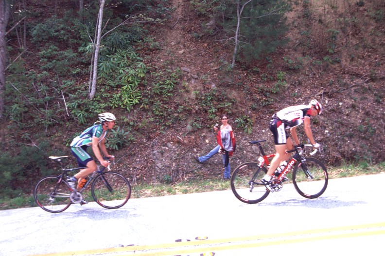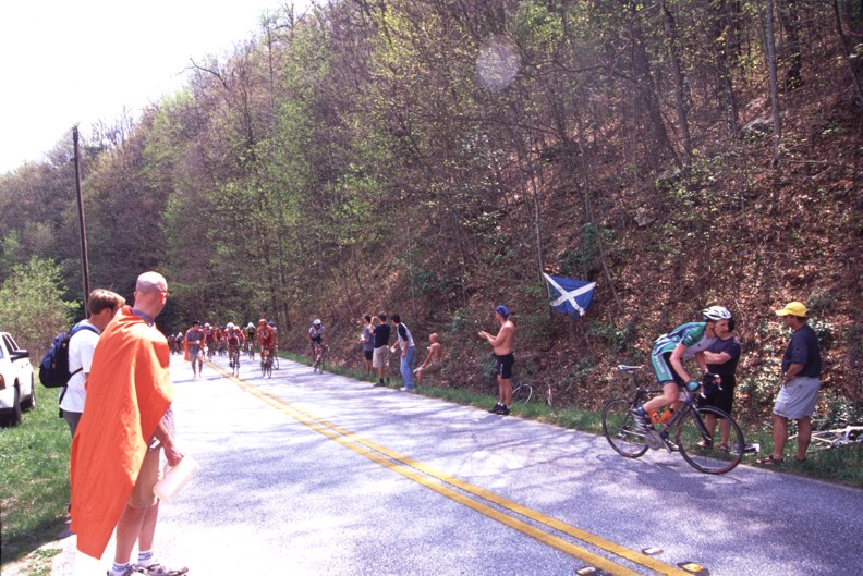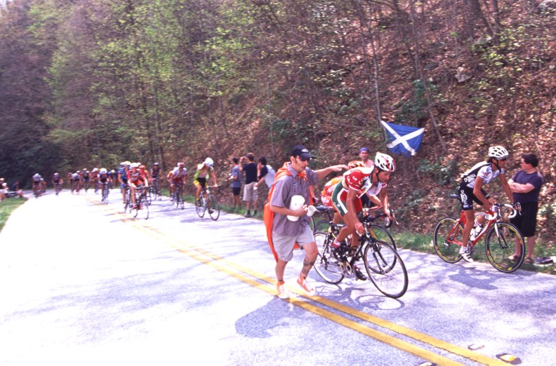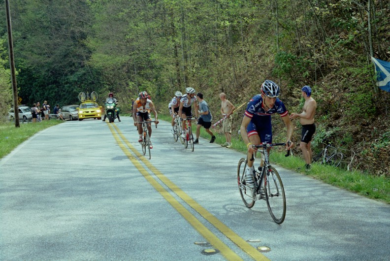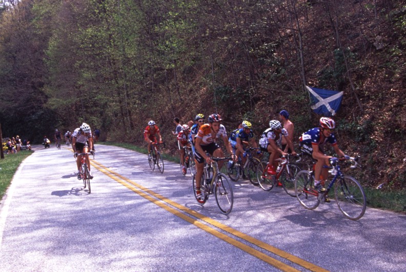 The 206 kilometer stage that left from Athens culminated with a 15 kilometer climb to over 5,000 feet in altitude up Brasstown Bald which is Georgia's tallest mountain. While Lance and U.S. Postal kept the race in check until the final moments there was no challenge offered when Cesar Grajales of the local Jittery Joe's team broke from the lead group. While I personally believe Lance could have answered this attack Cesar was allowed to stand on it and take the stage win. This was a big deal for the little team that supports itself by selling coffee to caffeine junkies. If you would like to help support the Jittery Joe's team and get some good coffee in the process check out their website at www.thebeanteam.com.