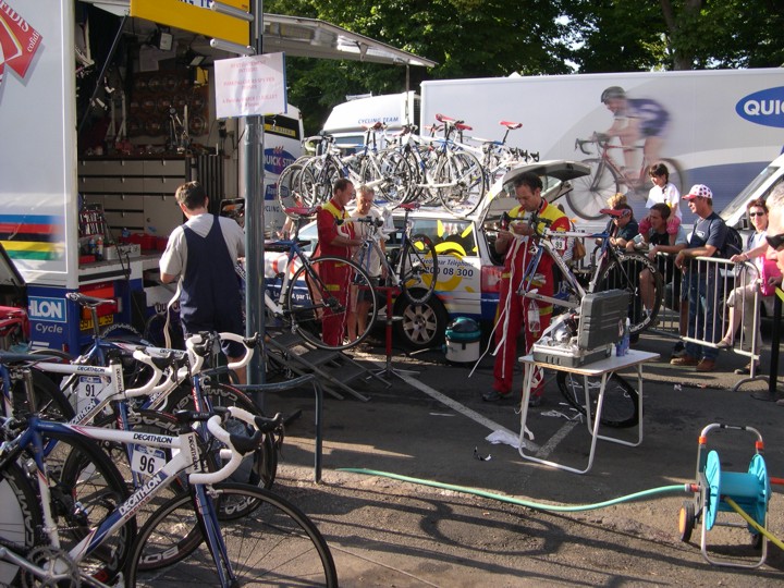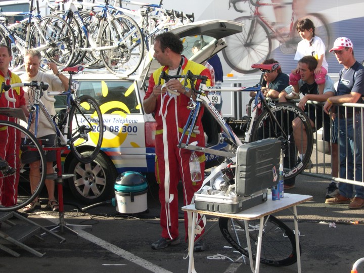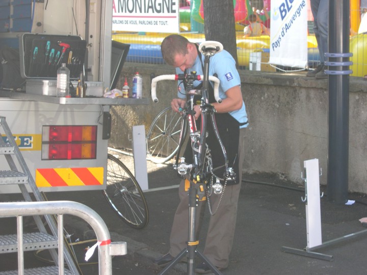 THE MECHANICS PREP THE BIKES FOR THE NEXT STAGE