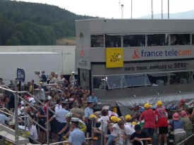 Stage 15 from Valreas to Villard de Lans was a fairly tough stage. At 180 kilometers it had only a single category 1 climb but was full of category 2's and 3's. The finish was an uphill grunt up the final of 3 category 2 climbs. The best photos of this stage are the post race photos. I did not have a good position for race photos but the podium shots are decent and it keeps getting better after the podium ceremony. This is the stage where we finally got to meet Lance.