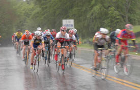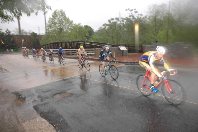 This mornings road races are being run in a nasty thunderstorm. Even with the bad weather the riders are racing hard. There are virtually no spectators her to watch but who expects fans to have the fortitude to endure these conditions for racers that are not on the cover of mainstream magazines. It just shows that many fans do not have a true heart for cycling and need to bet involved and excited about local events. Other than a few friends and family members these races were just for the cyclists.