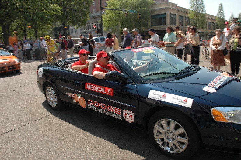 The riders come through for the final lap and it is time to take the course and settle into the race. As they head towards Macon the tour entourage run for their vehicles and head towards the finish. Chasing the race is an exciting but challenging deal. It is funny how you keep leapfrogging each other and how quickly you learn to recognize each others vehicles.