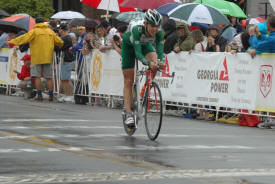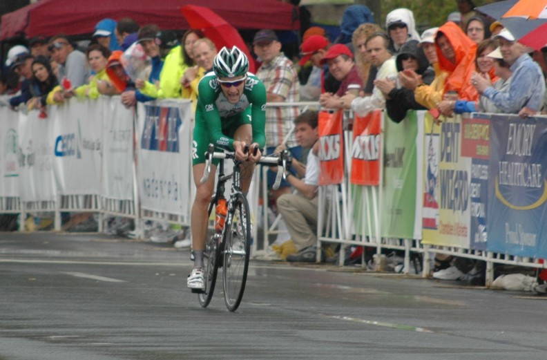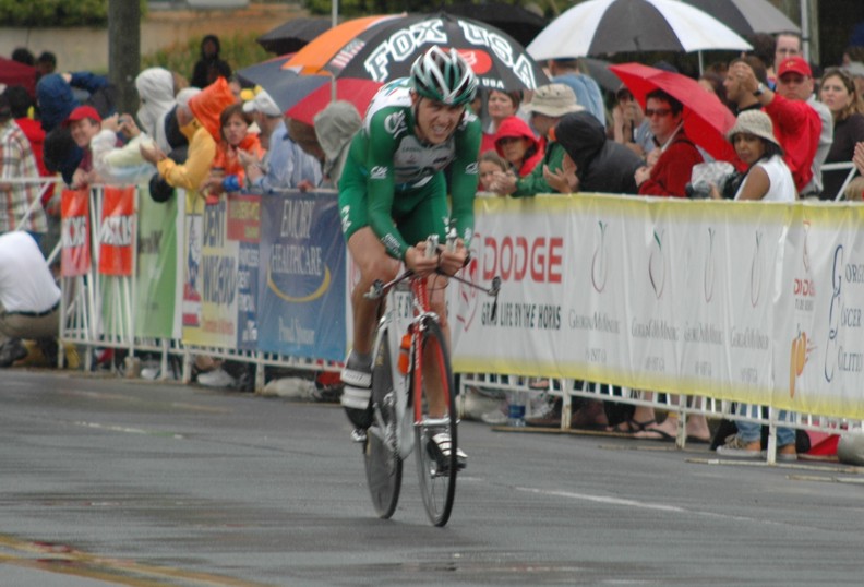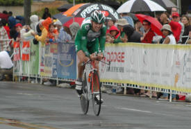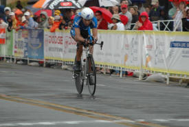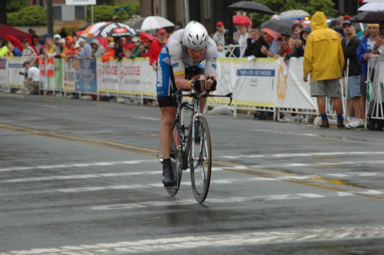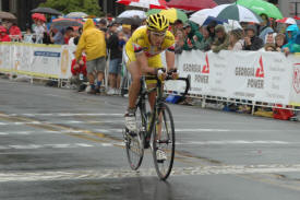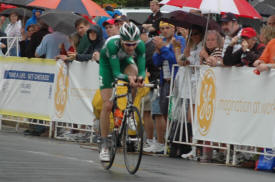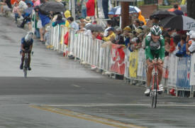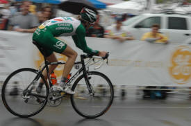 As the day wears on the riders keep rolling in. The rain has now picked up from a sprinkle to a light drizzle. I was not really wet yet at this point. Remember that if you get any real cool shots of this stage or have a comment to pass on to the peanut gallery please send it to bicycling@coolbicyling.com.