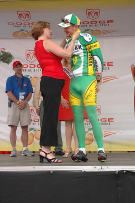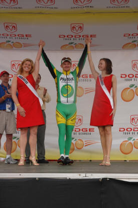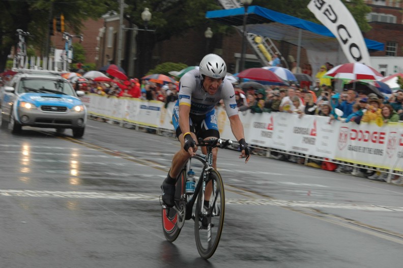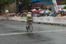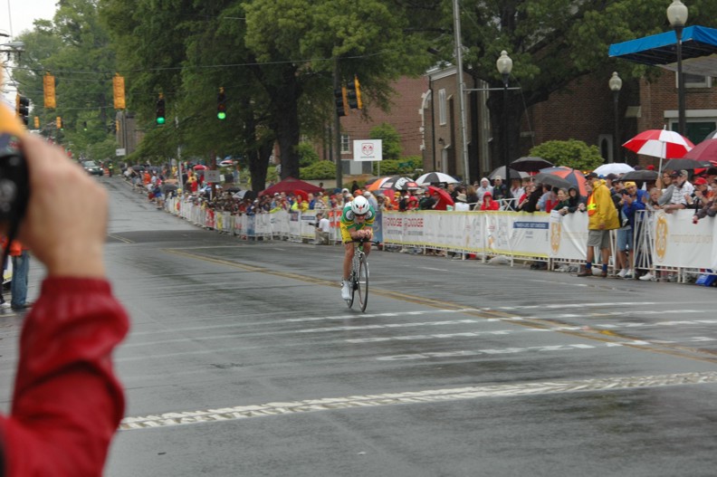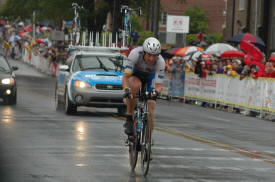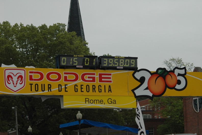 Floyd Landis has won the stage 3 time trial in poor riding conditions. The day started out cloudy with intermittent sprinkles. As the day wore on the intensity of the rain increased. By the time Lance got on the course it was pouring. Floyd was able to finish before the heaviest of the weather moved in which probably contributed to his time. He was the only rider to finish the course in under 40 minutes with a final time of 39:58.