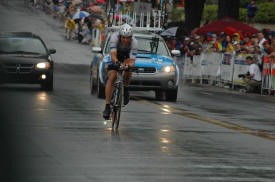Lance finished ninth overall and the weather had to be an issue. The conditions got continually worse as the stage wore on. When Floyd crossed the line I was still dry even though all I was wearing was Levis and a cotton t-shirt. It was just barely drizzling by that time. When Lance crossed the line I was soaked to the bone and keeping my cameras dry had even become impossible. Remember that if you get any real cool shots of this stage or have a comment to pass on to the peanut gallery please send it to bicycling@coolbicyling.com.
