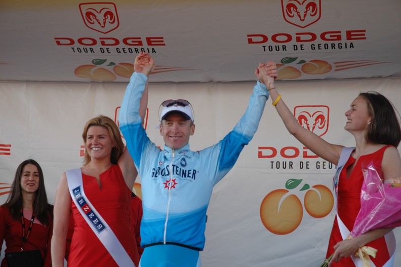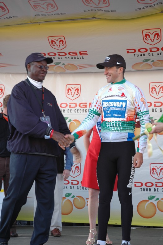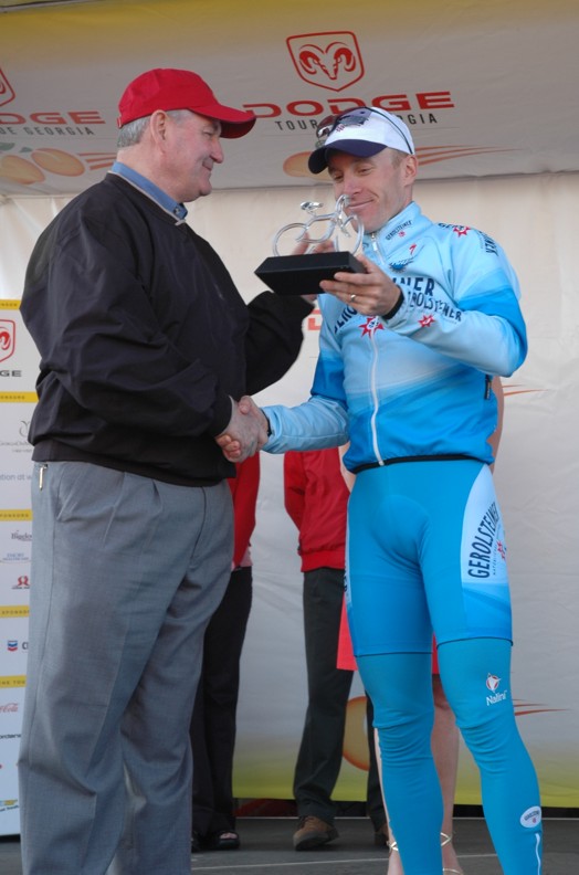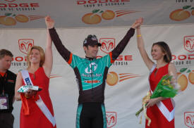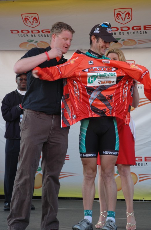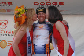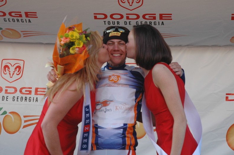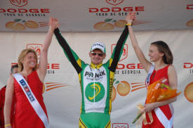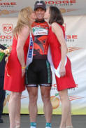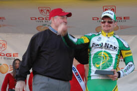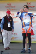 Trent Lowe of Jittery Joe's won the best young riders jersey with no one else even in contention. This young mountain biker turned roadie turned in the most impressive ride in the entire race. My opinion is that he did more than any other rider in the field considering his background. He came out of nowhere, riding part time for a small local hometown team and stayed with the big boys of international cycling the entire race. He was in the mix on every stage hanging tough even in the mountains. This kid has a future in road racing if he will just figure out that bike racing is about the road. Sure mountain biking is fun but the road is where the money is. Trent was always around with a big goofy grin and would stay after each stage as long as someone wanted to talk to him. Look for a big name team to sign him for next season. The Jittery Joe's director knows this and seems proud to be able to develop new talent to send up the ranks.