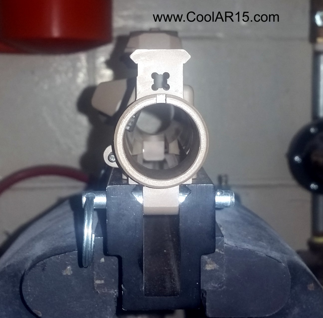 These are not the best pictures as shot with my phone. On future builds am going to break out the professional DSLR's with proper product lighting so we can get sharper images. Thes will suffice for now. Notice that I stop soon and notice the finish is starting to thin at receiver fronts lowest area. On this from front will notice the 11:00 to 5:00 clock area has seen substantial removal of mateial while the 6:00 to 10:00 area just a little lip on inside edge has been removed and most of the Cerakote is still left, especially around 7:00 clock position.