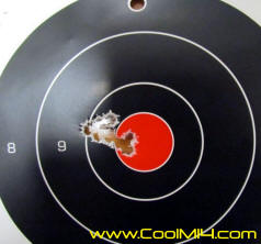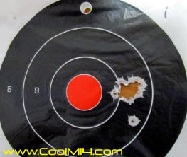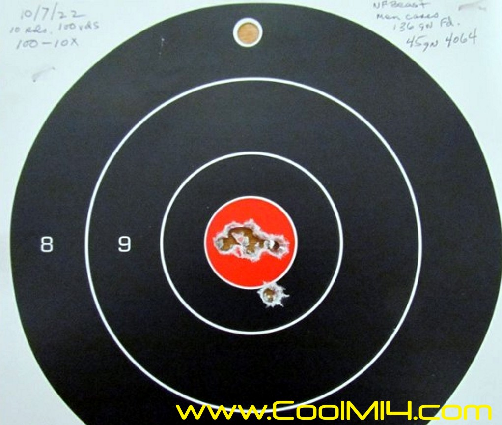 Got out with XM21 #209 for a few minutes this morning. Strapped on a Leupold MK- 4 16 x fixed to be similar to military scopes of a certain vintage. Temp 35 with a very light, almost still wind. Ammo is RA-68 cases with a 115 gn Berger fb over 45 gn of Norma 201 touched off with 210Ms running at 3,000 fps. Clean cold bore 10 rnd group at 100 is 1" max spread with an average of under .75 shot of a bipod, not benchrest. Another 10 dot rifle for sure.