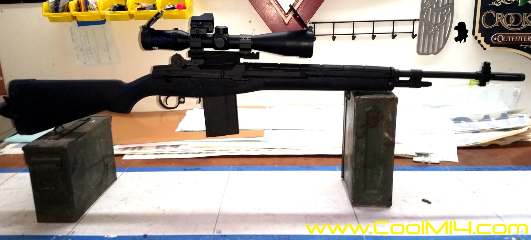 Top left is about as USGI as can possibly get, top right is a Bula Defense Systems M14 in red stock, bottom phoyos are a Springrield Armory M1a with Horus 4-16x and red dot for fast action CQB.
