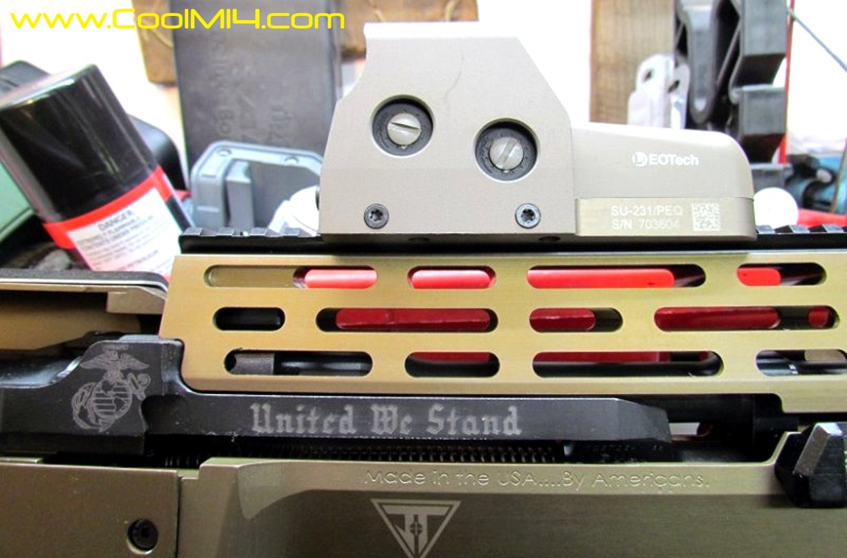 Welcome to the CoolM14.com Rogue M14 bullpup page. James River M14 receiver with 19" Bula barrel. Have some 16" suppressor ready barrel assemblies coming so it's time to get this thing ready. Can't wait to mount an OSS suppressor and get her out on the range. Back to the Rogue project today. 1. Remove old barrel 2. Get receiver ready for new barrel by lapping new bolt to 60/40 contact. 3. A little lapping of the bolt lugs to receiver using 220 grit and Brownell's tool. Finished her up with the new barrel and hardware this morning. Took photos with a couple of optic choices. I think the ACOG is going to be my favorite. Got out and ran 100 rnds function fire of MEN 94 through her this morning and it didn't skip a beat. Tossed brass at 2 oclock. With the ACOG and suppressed, it's no target rifle but will sure do for the minute of man. Remember you can click on all photos for a larger view.