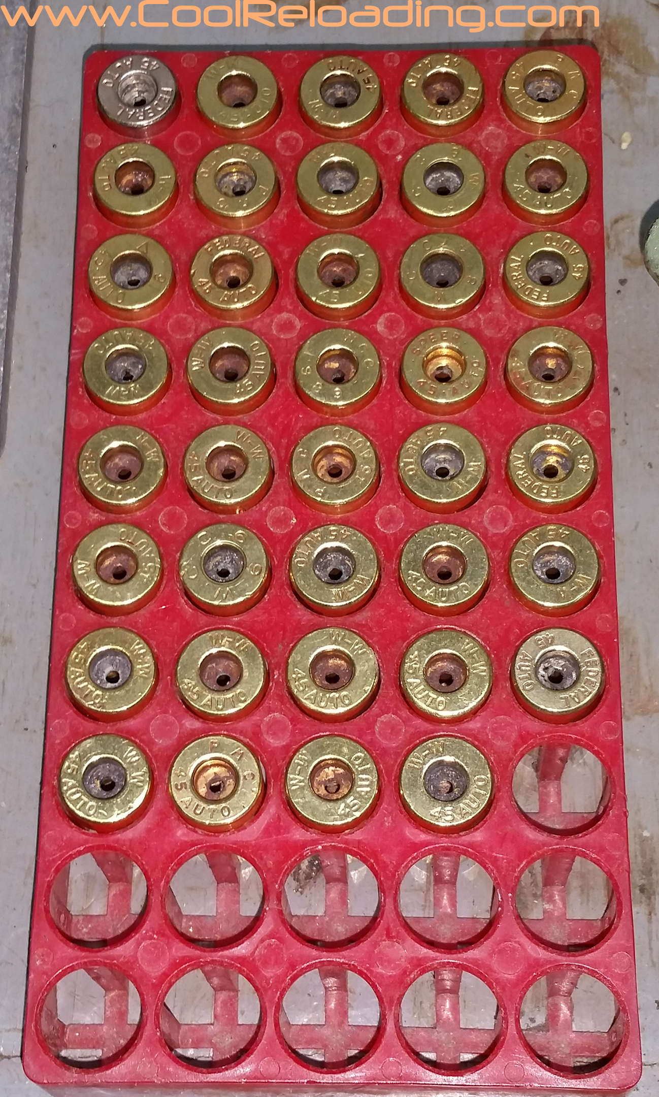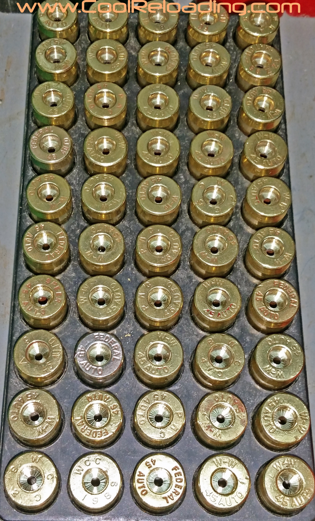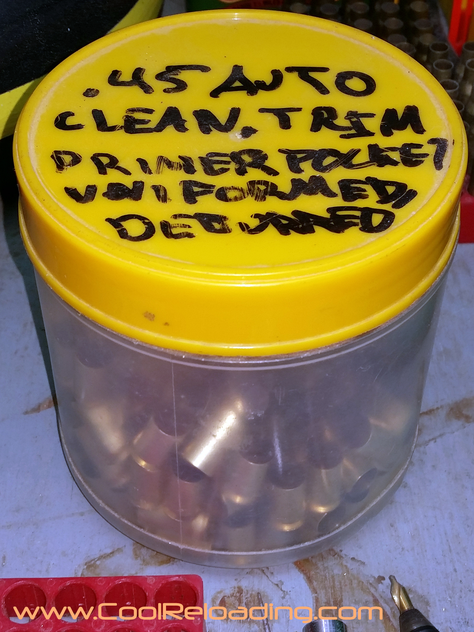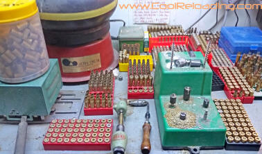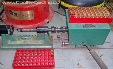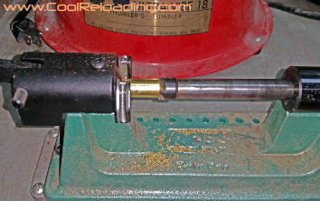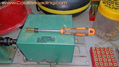 Afrer decapping and a initial sizing I then move on to primer pocket prep and trimming the case to length. The exception to this is depriming military cases. For these I prefer Lee's "unbreakable depriming tool". I still break these occasionally but they happily replace them every time. All reloading manuals give the recommended trim length for most calibers. For very short runs I use a manual trimmer but the majority of trimming is done with power trimmers or manual trimmers converted to power units. I use my RCBS Trim Pro powered case trimmer exclusively for 45 acp as I load more 45 than al other cartridges. When combined with the RCBS three way cutter you are able to trim to length, chamfer and debur the case all in one step.