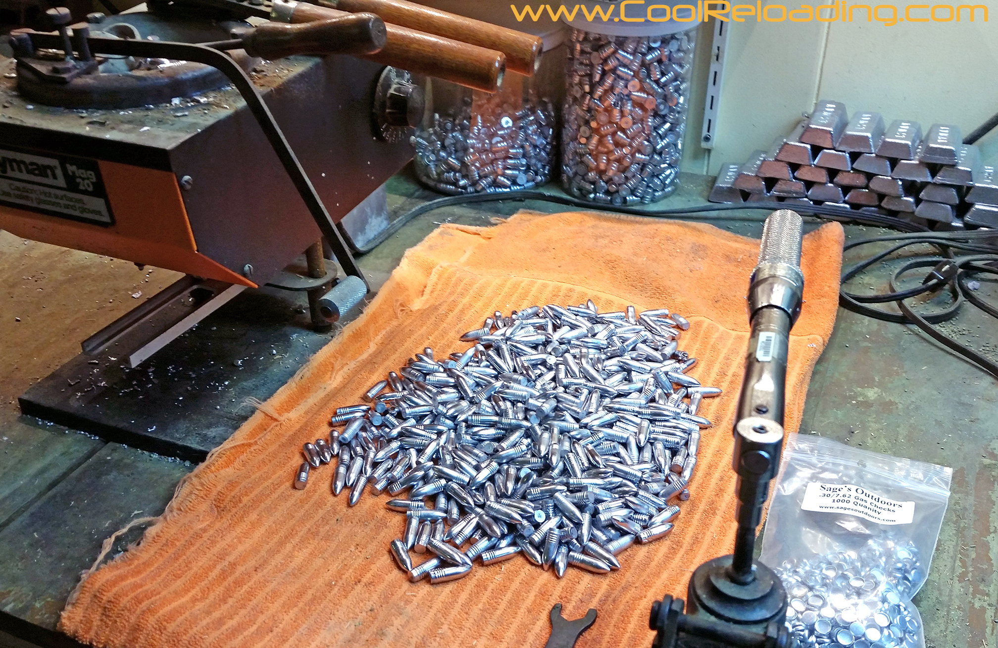 While many do not cast bullits or "boolits" as folks often call our home made lead projectiles this can be your biggest savings, especially for feeding handguns. I have been casting since age twelve under the watchful eye of the local game warden who taught me the basics of reloading and bullet casting then from age thirteen on using my own equipment. A pair of dual cavity moulds for 140 grain wadcutters and 158 grain semi wadcutters and a service station that let me have all the wheelweights I could pick up loose on the lot and I have been slinging lead ever since. With good molds and advanced lubricants the cast boolit has come a long way since I began and throwing super heavy cast rifle boolits at subsonic velocity to traditional weight bullets at 2,700 fps and faster. From scrounging to finishished projectiles we are going to take visitors through the entire process.