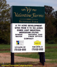 If you know what your looking at will know these signs are not corner to corner inkjet prints. On Valentine Farms signs upper green portion is Chromatic bulletin paint and the white is Chromatic "B101 White" which is brightest and longest lasting white paint we can source. Ronan is a more popular brand but their pigment load and amount of titanium dioxide is so low they have to add blue tint so white covers. We pay the extra money for better paint. The plat on the Candler Industrial Park sign is a thermal digital print as is the Medical Arts and Norton logo on sign in top corner along with the entire image on the Don Carter brochure box. To get even more life out of prints like the Norton logo which is a very bright yellow the sin will fade quickly if printed on an inkjet we use yellow vinyl then print the black which is the most U.V. stable of all print colors. I was raised by the best craftsmen in the trade and even on something as "inconsequential" as a small client logo for a mailbox will still use the most durable combination of techniques and materials leaving the cheap, fast and fail in a jiffy work for the "instant sign" storefront vendors' while following all codes and Utilities Protection Commission regulations.