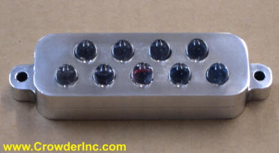 The tail light above was for a custom motorcycle built by a client in Texas. Our parameters were an absolute maximum size (we pushed every millimeter), it had to have two separate circuits (one for tail light and one for brakes), it had to be polished "billet" aluminum, it had to meet minimum legal lumen output, the lights had to be green and it had to be shipped in 72 hours. No problem for us. We cut it from two pieces of T-6 aluminum, installed high output LED's with voltage correction resistors, used hidden set screws to hold the two pieces together and then polished it to a mirror finish. Notice the 9-volt battery for size reference.