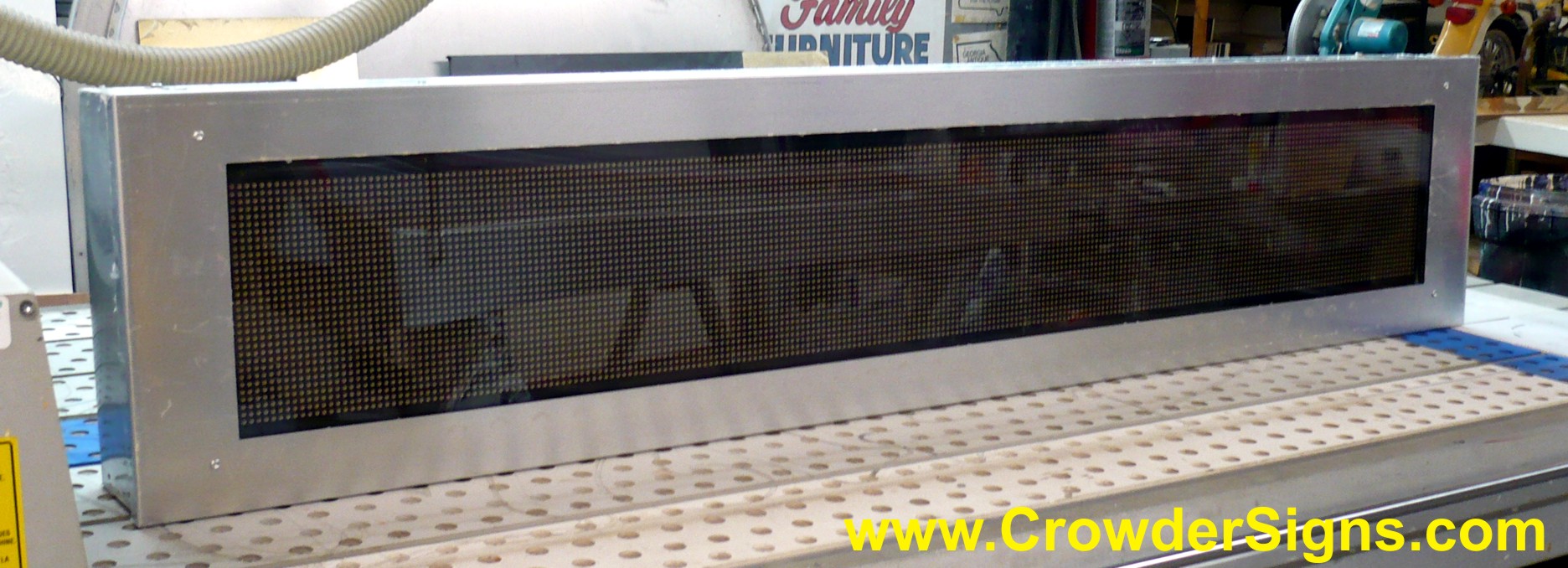This job began as a really good job with a good potential for profit but years of dealing with food processing facilities I had figured some extra wiggle room into my bid in case something went south. While Wrigley Gum has a good reputation to pay they also have a reputation to change specifications and be ultra picky. Doing six LED message centers on bid was tough to get the job and have enough room to make money but honestly think the IPX 68 standard scared off a lot of bidders. I was given specs in writing on size, pixels, materials and that signs had to be made to IPX 68 (dust proof and splash proof) standards with their in-house facilities maintenance doing the installation but required welded aluminum mounting structure inside, had to be able to hinge open for service, be made completely with aluminum except Lexan faces covering the face of panel and water/dust seals. We added seals, grommets where wiring exited cabinets, built to minimum clearance so all fit of doors was super snug, full length piano hinges and delivered as IP 68 standard signs.