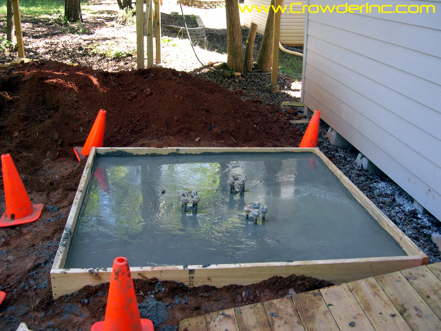 The footing is engineered for up to eighty feet freestanding even though owner only wanted forty feet. As a new ham we would rather go bigger than smaller in case as he upgrades from Tech to General and Extra he may want to go higher. We told him when ready to add HF adding two sections for a sixty foot free standing tower plus masts would be an easy upgrade for us to do and would not have to say footing is not big enough or guy wires would now be required. We always over pour our footings once digging holes and pouring concrete. Notice we installed four eight foot ground rods with footing which were all bonded together and then to each leg of the tower.