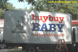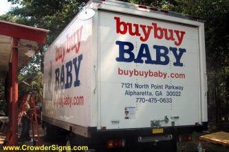 The above Buy Baby Buy truck was for a local store opened by the chain who were referred to us when we were the only shop in Gainesville that had digital image capabilities. We advised using a color photo of the baby but their brand at the time was black & white so we did what they wanted. They supplied every measurement for every line of component from their corporate art department along with brand and series of vinyl then we made and applied it all per instructions. Whatever the client needs, we try to meet their goals.