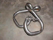 The above left anchor was a homemade stainless hanger which had been cut for a steel ring and then welded shut. It was installed using a nail driven into a soft lead shield anchor. Really Scary. It was the critical bolt on a popular route and pulled way too easily. There is now a fat Lifetime in its place.