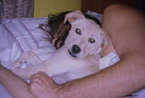 I found Blondie living in a hole on the side of the road. She had been run over and had a broken back leg and hip. She was suffering from malnutrition, dehydration and flea infestation. I thought she was a beyond help so I picked her up with the intent of dropping her off at the vet to be put to sleep. When I stopped by the house on the way to the vet we decided she should at least have a last meal and a bath so as to die with a little dignity. When we arrived at the vet he said she was fixable for a few hundred bucks so I drooped the change and took her home.