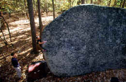 Boat Rock, located near Six Flags in Atlanta, is an outstanding bouldering area. Unfortunately many of the boulders are located on private land and most of the land owners are not encouraging climbing. This area has seen climbing activity as long as anyone can remember and has problems to challenge all skill levels. For the non-climber there are trails to walk, woods to relax in and a lake. All in the city limits of Atlanta.