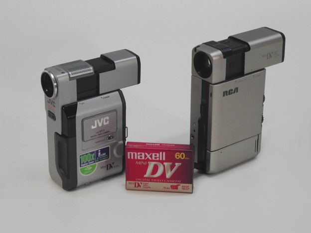 I love my digital video cameras. The mini D.V. platform makes for an extremely small camera that shoots at a higher resolution than full sized V.H.S. format cameras. The R.C.A. camera is the oldest one I use and was actually manufactured by J.V.C. It has been highly abused and has seen the inside of the repair shop more than once. Skating and skiing can be tough on cameras. The J.V.C. camera has more features than can be utilized and the 100x zoom is almost freaky.
