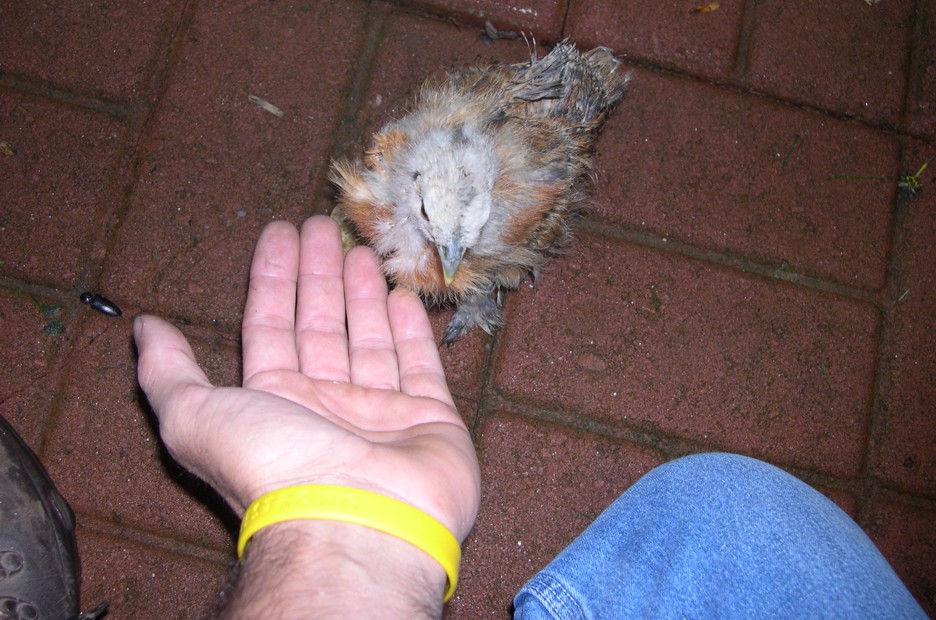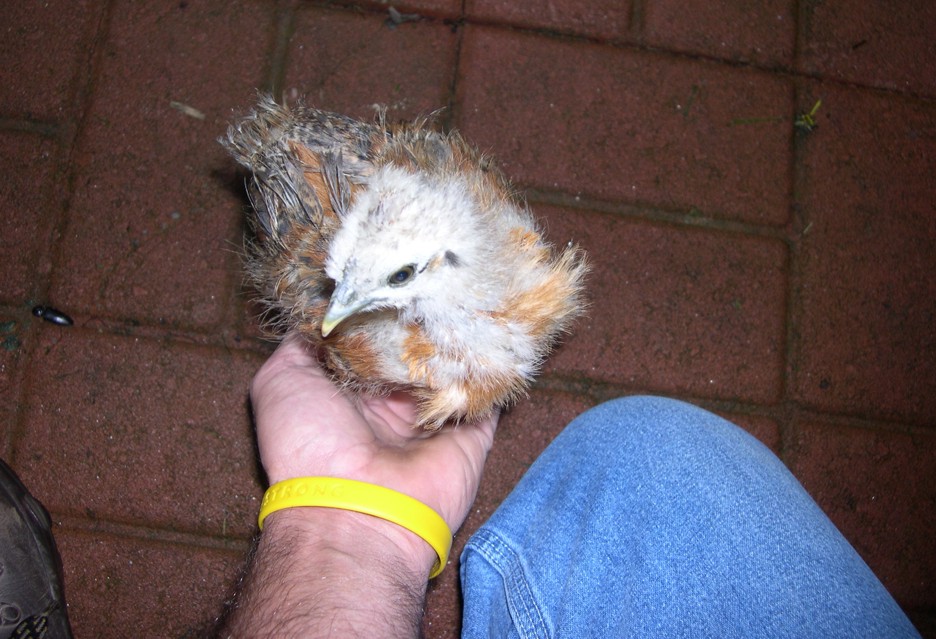 When it came time to go home I ran the little chicken out of the shop and locked the doors. I then got in my truck to go home. As I was backing out the little chicken started chasing the truck out of the parking lot. I began thinking of all of the half wild neighborhood cats and instantly I was stuck.