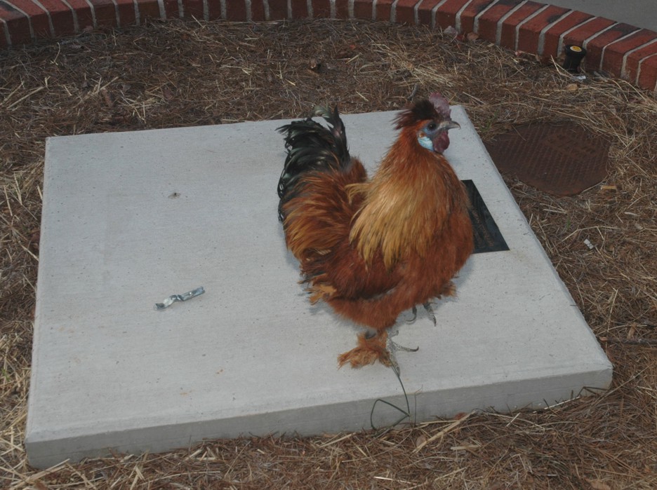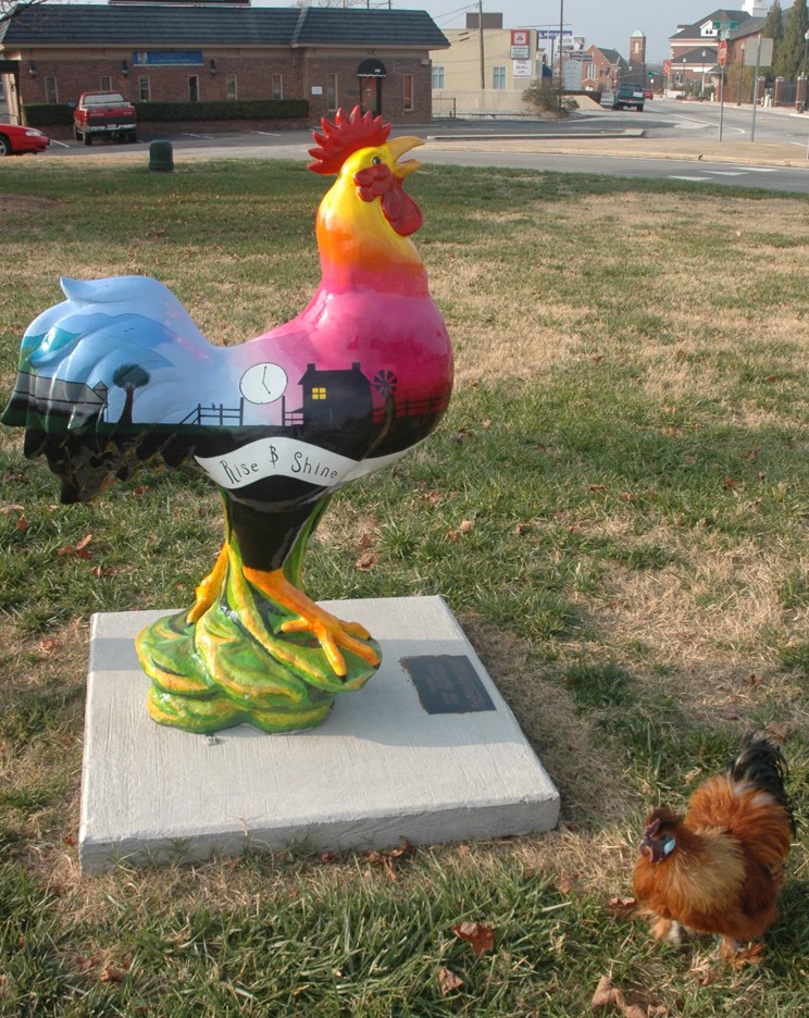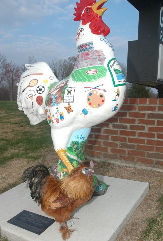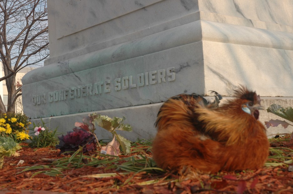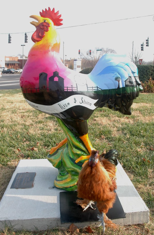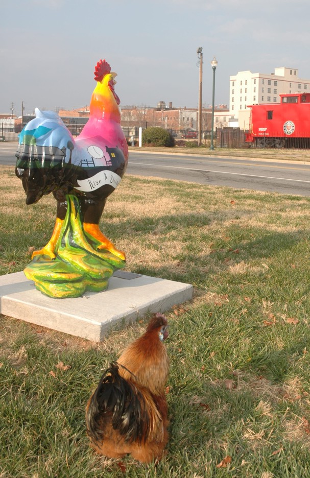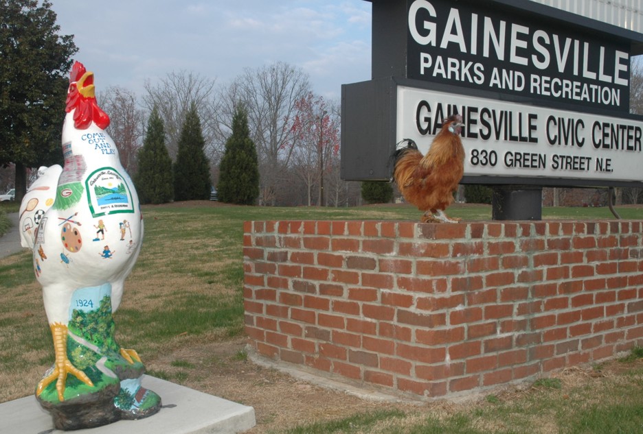 One of Chicken Little's favorite days is what we call Le Tour de Chicken. In the finest of French traditions, we set off on a power tour of Gainesville's different Chicken monuments. Believe me when I tell you that hitting all of the important chicken sites in this town is a long day for a hillbilly and his chicken. The only places we choose not to visit are the chicken processing plants that our town is famous for. These places are a real bummer for Chicken Little.