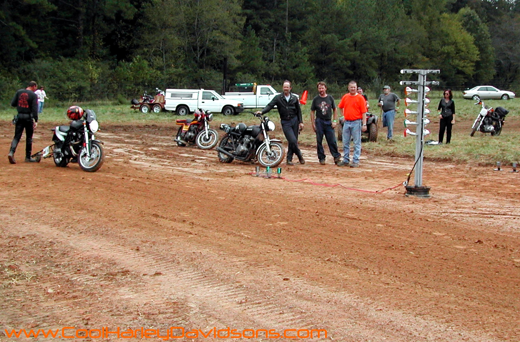 The Dirt Drags was a weekend long event in which many of the spectaters and participants camped in a designated area where lots of beer was consumed. Don't know where scooter people sometimes get a bad reputation as events like thes draw members from various clubs, endependent riders, to families with the kids and grandparents. Even if rival clubs turn out these events are neutral ground and even a wanna-be insta-biker like me (17,000 dollars & passed the Licensing test) can walk around and have fun. One hint is when go to biker events, especially with a fleet of long lens professional cameras get permission from the event organizers before you start clicking and be careful what you do with your pictures. Lots of photos I have taken at biker events will never be seen by anyne but the wife and I or sometimes passed to the club officers who sponsored an event.