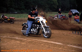 Kraut basically pulled this event out of his hat with minimal help. he found the venue, organized all the logistics, advertised and got all the details covered with the help of the club. All while working every day as this happened during his busy season at work so he was stretched to the max as was his chain. When the chain snapped the team realized they didn't have a spare and his big monster does not use just any chain. The only person with a spare on the propert was his primary competitor who could have said sorry and loaded his bike for the win without a run but instead he loaned Kraur a chain and gave him time to fix the bike so the race could be finsihed between two men on the dirt instead of a technicality.