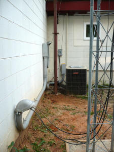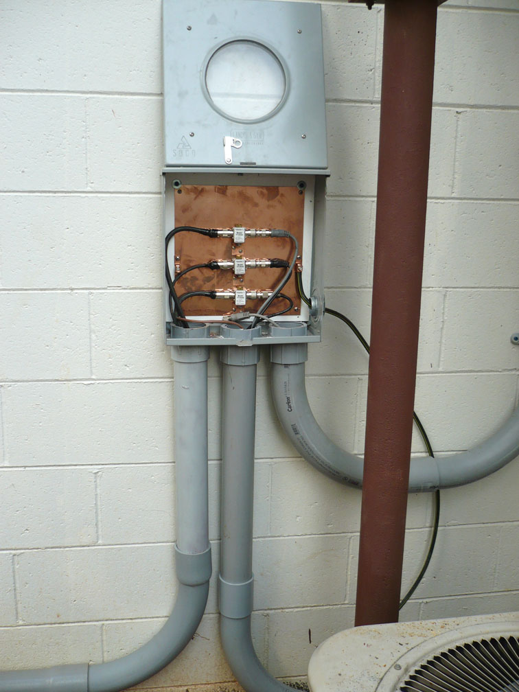 COAX CABLE IS ROUTED THROUGH WEATHER HEADS & PVC PIPE