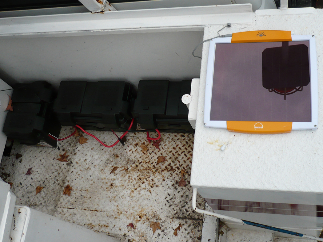 To be sure they always have a charge I have two solar panels that keep them continuously charged. One is a 350 milliamp panel and the other is a 500 milliamp panel. The two combined provide .85 amps and 12 watts at 14 volts during full sun. I also have a 1.5 amp float charger wired into the system that can renew the charge to the batteries when standard 117 volt AC electricity is available either from a wall socket or one of the trucks generators. They can also be recharged from the vehicles alternator. This three tiered charging system gives lots of flexibility in keeping the radios powered.