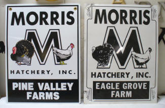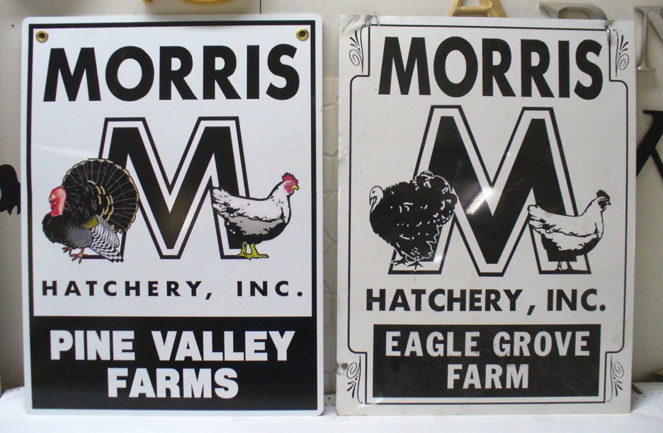 We showed them our method of reinforcing the hole for the mounting hooks with brass grommets and how we rounded all corners on aluminum. Next we ran down the proper turkey that they were using on their website. It turned out to be in the Corel Draw 8 clipart collection. We had to scan a copy of the chicken and retouch it to print and apply a vector cut outline.