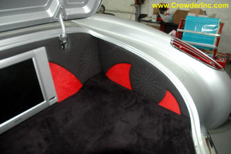 This tonneu cover was built for a custom show truck long before LEDs were common and making the light we needed on twelve volts was a trick. The "Street Glow" neon tubes operate on the vehicles 12 volt system. The cover is raised and lowered with electric powered actuators. Of course it was painted to match the truck and when the cover is raised the flag lights up automatically. The cover is upside down in these photos and project was finished with minutes to spare before the truck had to leave fast to make the show it was being built for where it took first place in its category.