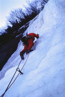 Starshine is the classic of Southern ice routes. While not extremely difficult under normal conditions it can become a serious adventure quickly if the ice is thin. This climb forms more consistently and is probably climbed more than any other non-road cut climb in the region. On weekends expect to queue up in a line that can often be five parties deep. Take a quick run up it with us and I apologize for these underexposed photos but will find some better ones in the future.